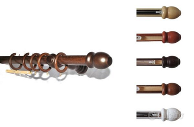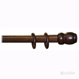Bastoni in legno per tende di varie misure diametro 35 con supporti e anelli color noce