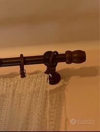 2 Bastoni per le tende in legno marrone scuro, con anelli e gancetti . Lunghezza 1,70. Il prezzo si intende cadauno