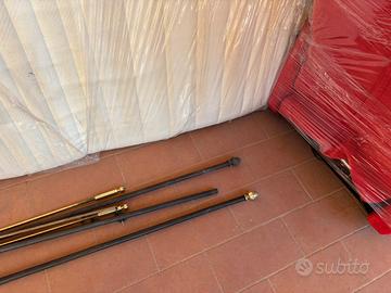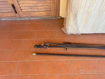Vendo bastoni per le tende doppie in ferro, con finale in ottone a forma di pigne per tende, con gancio per aprire e chiudere le tende.