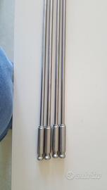 Vendo 4 bastoni per tende in acciaio nichelato completi di supporti, terminali, anelli antirumore e fruste.