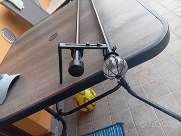 Bastoni per tende estensibili da 110cm a 210cm. Supporti a due posti per poter mettere due tende una leggera e una più pesante. I bastoni sono quattro. Volendo ci sono tende adatte a due porte finestre di larghezza 150.