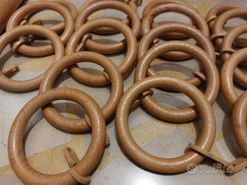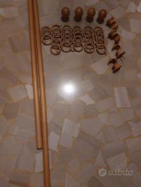 N. 2 bastoni completi, con anelle in legno. Nuovi. (totale di 28 anelle, 4 pomelli laterali e 4 appoggia bastone). Lunghezza bastoni: 1) 140 x 3,5 cm 2) 118 x 3,5 cm. Comprando tutti e due, prezzo 40 eur. Comprandone solo uno 25 Eur.