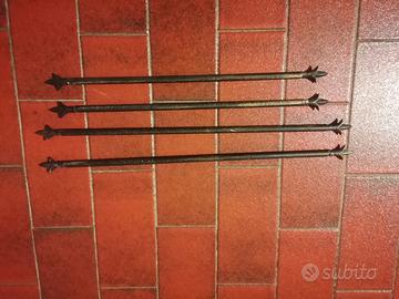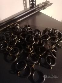 N. 3 bastoni per tende (113 cm), estensibili, in ferro battuto, completi di staffa di sostegno, viti e anelli