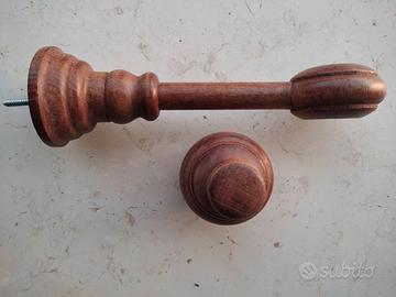 Bastoni in legno colore noce del diametro di 23 mm per Tende a strappo, comprensivi di asta tira tenda, anelli e supporti per fissaggio a parate.