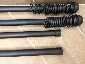 Due kit bastoni per tende. Ogni kit è composto da due bastoni (uno per la tenda l'altro per la mantovana o calata) di lunghezza 160 cm completi di teminali ( due a sfera e due cilindrici) ,due staffe di supporto e 30 anelli per agganciare le tende e calate