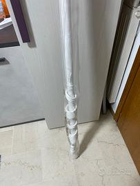 Bastoni per tende in legno bianco con scorrimento, nuove mai usate con corde tappi e supporti. Lunghi 2 metri diametro 11 cm. Sono 5 bastoni completi