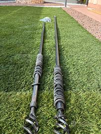 Doppio bastone in metallo per tende con anelli, e all’estremità torciglione nero.
