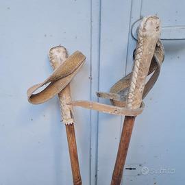 Bastoni sci vintage anni 50 in bambù e pelle di foca bellissimi