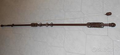 N° 2 bastoni ( aste ) per tenda in legno color ciliegio lunghezza cm 2,10 completi di supporti terminali ed anelli In perfetto stato, prezzo 20 euro l'uno.