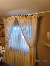 Vendo 2 bastoni per tende in ferro lavorato, realizzati artigianalmente da un artigiano locale, robusti e dal design elegante. Misure: bastone 1) lunghezza 185, larghezza massima 36 cm; bastone 2: lunghezza 170 cm, larghezza massima 35 cm. Condizioni ottime. Prezzo richiesto € 150,00 per entrambi i bastoni.