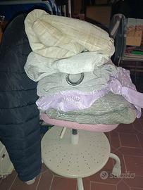 Vendo 6 bastoni tende con supporti più 5 tende ,di cui una quella Lilla doppio velo, con e senza anelli