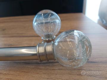 vendo 3 bastoni tende estensibili con finali a boccia effetto crepa, colore acciaio