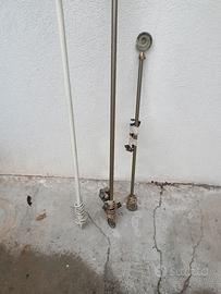 Come nuovi. Bastoni tende in ferro antichizzato colore avorio e ferro brunito. Misure cm. 75, 120, 220. Completi di reggibastoni, terminali e anelli. Vendo a 30 euro quello più lungo e euro 20 ciascuno gli altri 2