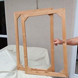 corredato di telaio in legno su misura per montarlo al vivo