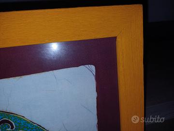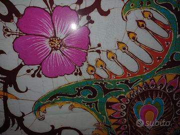 batik balinese cornice in legno grezzo colore naturale spatolato ricoperto con vetro misure: 84,5 x. 91 la foto non mostra bene i colori dell'opera