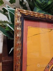 Batik di Fernando Bandula acquistato in Sri Lanka incorniciato in Italia con cornice in legno intagliato dorato e vetro protettivo cm 43x43 in ottime condizioni.
