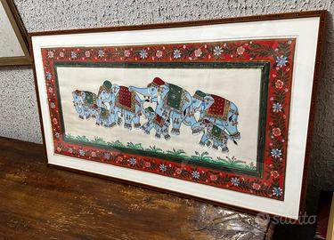 Quadro con batik di seta indiana Raffigurante gruppo di Elefanti Larghezza cm 94,5 x Altezza cm 51,5 Solo ritiro a domicilio