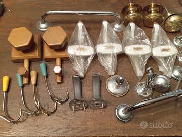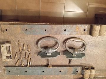Battenti per porta antico in ottone e cardini in ferro per portone. Vari attaccapanni in legno e metallo . Chiedere per info e prezzi