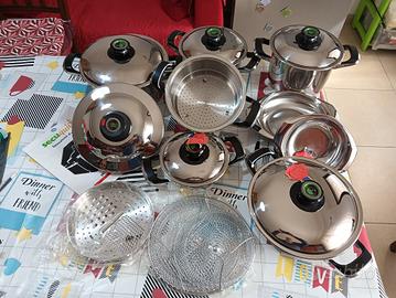 vendo batteria di pentole marchio AMC 11 pezzi come in foto temperatura integrata sul coperchio nuova mai utilizzata, possibilità di consegna a mano oppure spedizione.