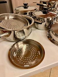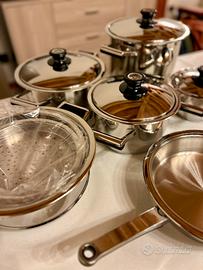 Vendo una batteria di 6 padelle della marca Cieffe, realizzate in acciaio inox 18/10 triplo strato, ideale per una distribuzione uniforme del calore e una lunga durata.