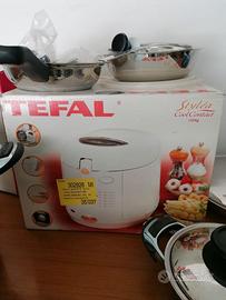 Una friggitrice tradizionale ed un servizio servi in tavola.