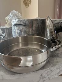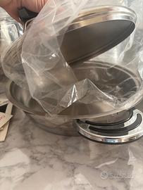 Vendo batteria di pentole nuove inutilizzate per cambio piano ad induzione. Marca METAL CC acciaio 18/10 inossidabile e rapidità di riscaldamento con annessi coperchi che presentano manometro di temperatura. No perditempo