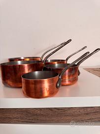 Bellissima batteria di pentole in rame 2 mm Rivestimento interno in acciaio inox Manici in ghisa