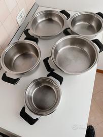 Vendo batteria IMCO , composta da 5 pentole. Misure: cass 16 h 6 cm cass 20 h 8 cm cass 20 h 10 cm cass 24 h 6 cm cass 24 h 9 cm