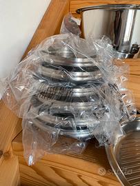 Batteria Pentole Accia Inox Tipo AMC Fondo Spesso