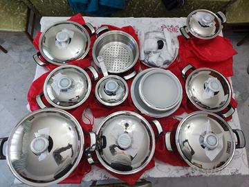 Set di pentole in acciaio inossidabile, eleganti e resistenti.