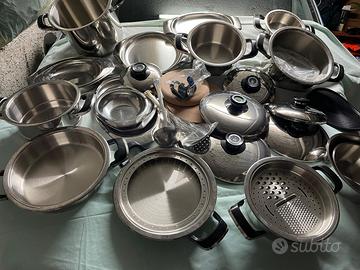 vendo serie batteria gold amc nuova,tutta in acciaio,usata con circa 33 pezzi e 6 taglieri.valore da nuova oltre 2000 euro. NO INDUZIONE