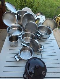 Batteria pentole triplo fondo acciaio inox robustissime 10 pezzi,tutte con coperchio.