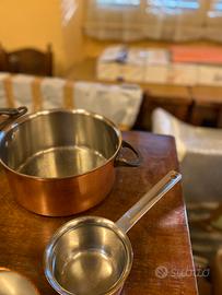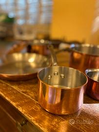 Stupende pentole in rame interno inox (7 pezzi), non richiedono ristagnatura. Ottimo stato tenuti maniacalmente.