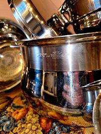 Vendo batteria di pentole Serafino Zani per Richard Ginori, set completo di circa 15 pezzi in acciaio inox 18/10, in ottime condizioni d'uso, alcuni pezzi mai usati.