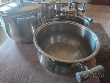 Vendo batteria pentole Prandelli a 40 euro (7 pentole, 5 coperchi). È stata usata ma è in ottime condizioni. I manici, in acciaio, sono un po' scoloriti perché lavati in lavastoviglie.