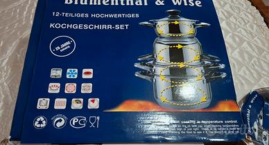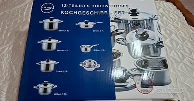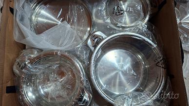 batteria completa mai usata in acciaio inox completa bellissima ,istruzioni tutto in scatola no perditempo