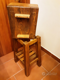 Oggetto di arredamento di altri tempi. Vendo bellissimo batticarne in legno massello con cavalletto di supporto artigianale. Come nuovo in quanto mai usato per lo scopo per il quale è nato. Come si vede da una foto Il batticarne è incastrato nel suo cavalletto e pertanto potrebbe anche essere usato senza. Le misure di ingombro del piano batticarne sono cm 38 x cm 31 x altezza cm 80. Per l'eventuale spedizione sentiamoci in quanto per peso e dimensioni non è facile e conveniente.