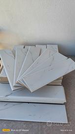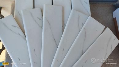 Vendo 60 listelli di battiscopa in ceramica bianca effetto marmo con venature in quarzo. Ceramiche di Sassuolo , dimensioni i millimetri (mm) 330x70x7 totale in metri lineari 19.8ml