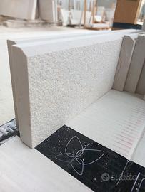 Battiscopa in pietra naturale Apricena bocciardata, altezza 10 cm e spessore 2 cm con smusso obliquo sulla costa, a correre in varie lunghezze (minimo 30 cm, massimo 130 cm). Ideale per pavimenti esterni e scale. Prezzo 4 € al metro lineare, iva e trasporto esclusi. Trasporto disponibile in tutta Italia da concordare il costo in proporzione alla quantità richiesta e alla destinazione.