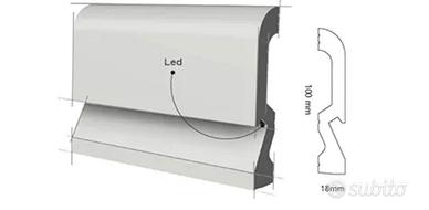 battiscopa moderni ed eleganti, porta led da 2 metri, in polimeri. Disponibili 10 metri lineari, nuovi ancora imballati