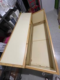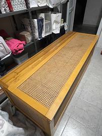 Baule in legno chiaro con anta in paglia di Vienna dimensioni: 169x66 di altezza x 56 di profondità interna ( profondità esterna cm 61) . Molto asciutto e molto capiente. Trasporto a carico dell’acquirente.