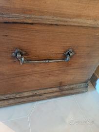 all'interno e' formato dal vano principale + un vano piu' piccolo , cm 57 x 32 x 37...con suo coperchio...ha 2 maniglioni particolari e anche le staffe e le mappe del coperchio sono uniche e particolari...non so' di preciso di che legno sia fatto ,ma molto spesso e resistente e molto pesante. , circa 150 kg o piu'....tel 3287161592.