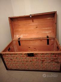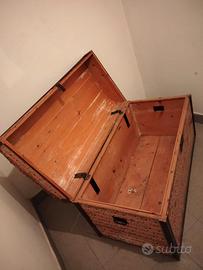 Vendo intetessante baule da carrozza in legno robusto. Misure L.98; la50; h 58. Accetto proposte d’acquisto