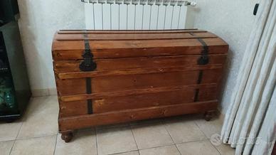 Bellissimo baule antico color ciliegio, con piedini a " cipolla", capiente. Tenuto bene. prezzo poco trattabile