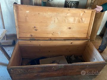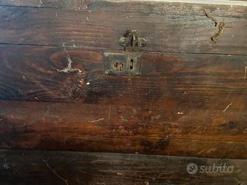 Antico baule della nostra falegnameria. Tutto massiccio colore martone scuro Vendita sul posto zona Cerea provincia di Verona. Per vendita a distanza eventualmente ci mettiamo d’accordo le misure; 1,33 lunghezza 55 Profondità 60 Altezza