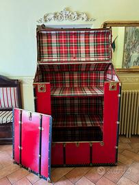 Baule vintage con ripiani e appendiabiti , restaurato a nuovo