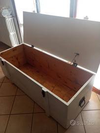 Molto capiente e pratica x metti-tutto, giochi, coperte, qualsiasi cosa. Pratica anche per sedersi sopra o ad uso tavolino da fumo o aperitivo!