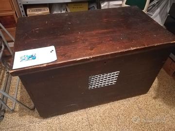 Baule cassapanca molto capiente e resistente, c’è qualche segno di usura. Ci si può sedere sopra dato che regge benissimo la seduta di sue persone. E’ stato per anni in una sala prove musicali ed era perfetto per riporre cavi e attrezzatura da studio.