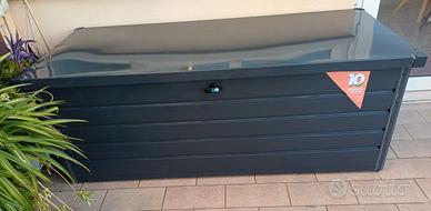 Cassapanca in metallo SVEG 716 litri - La vostra soluzione di archiviazione definitiva Avete bisogno di uno spazio di archiviazione affidabile e robusto? La cassapanca in metallo SVEG è la risposta. Con un'impressionante capacità di 716 litri, questa cassapanca è la soluzione perfetta per le vostre esigenze di stoccaggio. Caratteristiche eccezionali: Forte e durevole: realizzata in lamiera zincata di spessore extra-forte da 0,40 mm, la cassapanca SVEG è progettata per resistere alla prova del tempo e proteggere in modo affidabile i vostri effetti personali. Anti-corrosione con garanzia di 10 anni: la protezione dalla corrosione è una priorità. Con una garanzia di 10 anni, potete essere certi che il vostro mobile SVEG manterrà la sua integrità e il suo aspetto impeccabile. Facile montaggio e nessuna manutenzione: l'installazione del mobile è semplice e non richiede alcuno sforzo aggiuntivo. Inoltre, grazie al suo design, non sarà necessario dedicare tempo alla manutenzione. Sicurezza assicurata: il coperchio a cerniera in acciaio zincato con serratura di sicurezza e chiave garantisce la tranquillità di sapere che i vostri effetti personali sono protetti in modo sicuro. Stile e funzionalità in uno: La cassettiera SVEG non solo offre una pratica soluzione di archiviazione, ma si integra anche in qualsiasi ambiente grazie al suo elegante design grigio antracite. Non aspettate oltre per assicurarvi uno spazio di archiviazione affidabile e di alta qualità. La cassapanca in metallo SVEG è la scelta perfetta per chi apprezza la durata, la sicurezza e la facilità d'uso: ordinatela subito e godetevi uno spazio di archiviazione senza preoccupazioni!
