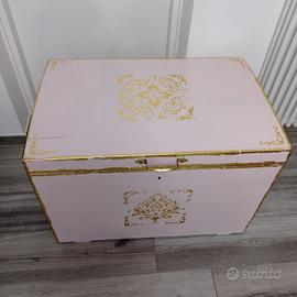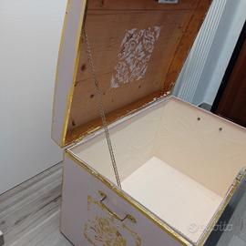 vecchio baule rivisitato con stucchi e foglia d'oro, foderato internamente. Da vedere! misure 60 x 90 x H62. Non spedisco, solo ritiro a Vicenza in zona via Quadri. euro 150
